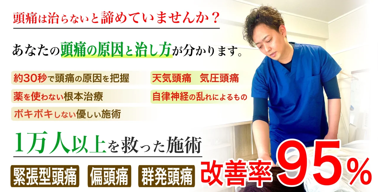 ほとんどの頭痛が首の骨のズレと血行不良が原因 首のつけねの血行をよくするだけで「頭痛」は消えます。 最短であなたの「痛み」を取っていきます。頭痛治療はとてもシンプルですが、他の整体院や接骨院とは治療法が違いますので、他でダメだったからとあきらめないでください。 頭痛専門整体は、ボキボキやらない優しい施術です。 頭痛の原因を探り、首をメインに手だけのタッチで後頭部のつまりを取っていきます。施術時間は約20分です。頭痛の原因となる頚椎2番のズレをいち早く発見し、ソフトなタッチでズレを矯正し頭部に上がっていく血流をよくします。他の整体院、接骨院等の治療法とは違いますので、他でダメだったからと諦めないで下さい。 頭痛でどこに行ってよいか分からない方へ 緊張型頭痛・偏頭痛・群発頭痛を治療するには、病院では投薬、接骨院・整体院では頭・肩・背中にフォーカスしたその場しのぎの施術を行うことが多いです。マッサージで症状を軽減させるので施術直後は少し回復しますが、根本原因の改善ではない場合、再発を繰り返すことが多いです。また、薬を飲み過ぎると逆に症状が悪化(薬物乱用頭痛)することもあります。フリーベラ立川整体院では頭・肩・背中だけでなく全身の血液循環を改善させ自然治癒力を高め、頭痛の根本改善を目指します。 施術の流れ ①あなたの頭痛の悩みをお聞きします。 問診票で不調の症状を書いてもらい、お話を聞きます。例えば、いつから頭痛がしていて、本当は薬をやめたい!など、なるべく詳しくお話しを聞かせてください。 ②施術前に検査をします。 どこがどういう風に痛むのか?立っているときの体のバランスなどをチェックします。 ③施術に入っていきます。 首の付け根、頭蓋骨の凝りやラインをチェックしてどこに不調を発生させている「つまり」があるかを確認し、過緊張をほぐしながら矯正していきます。 ④頭痛、不調の原因と治療方針を説明します。 どうして不調が起きているのか?あなたの頭痛や不調の原因によって何回ほど通う必要があるか?を説明させていただきます。 ⑤お会計と次回予約。 お会計と併せて次回のご予約を相談させていただきます。継続的に施術を行うことで症状の悪化を防ぎ、改善していきます。 お疲れさまでした。